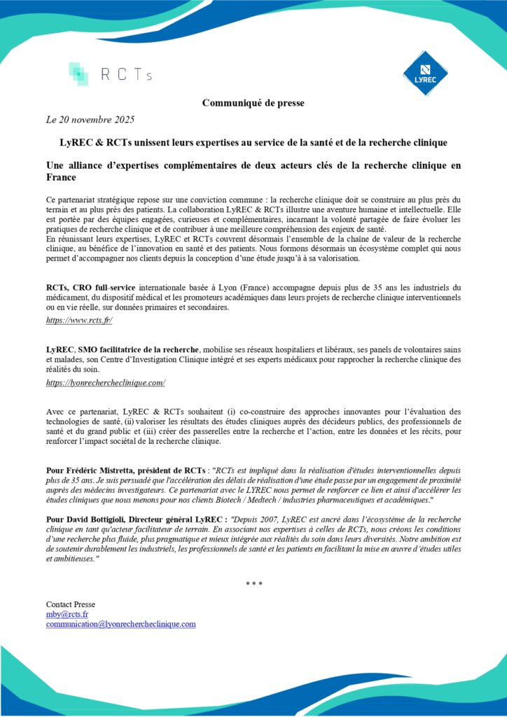 [Communiqué de presse] – Partenariat stratégique LyREC & RCTs
